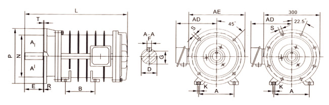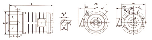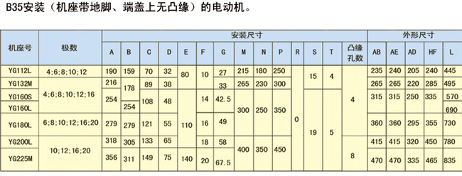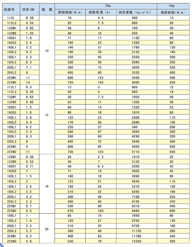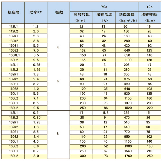 YG系列輥道用三相異步電動機分別設計成YGA和YGB兩種工作型式,YGA適用于工作輥道,工作制為S5,YGB適用于輸送輥道,工作制為S1。